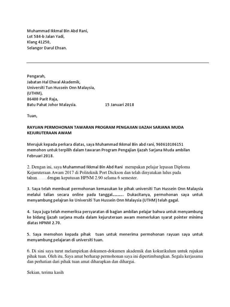Rayuan Permohonan Tawaran Program Pengajian Ijazah Sarjana Muda Kejuruteraan Awam