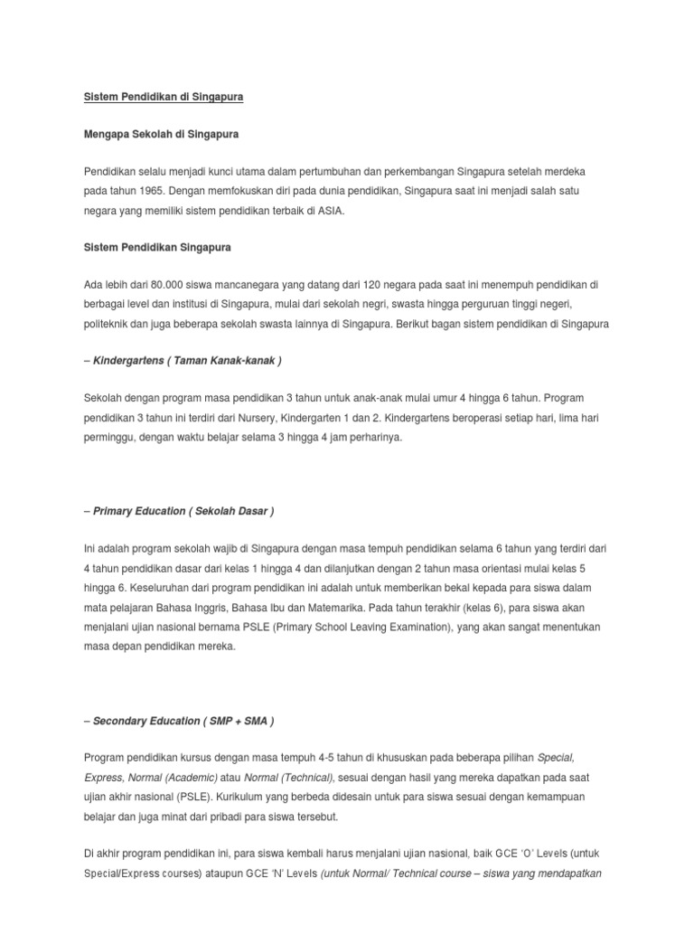 Sistem Pendidikan Di Singapura