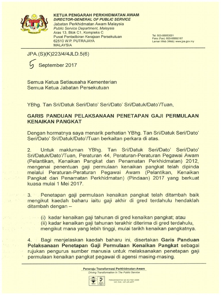 Pekelilling Garis Ppp Gaji Permulaan Kenaikan Pangkat Pdf