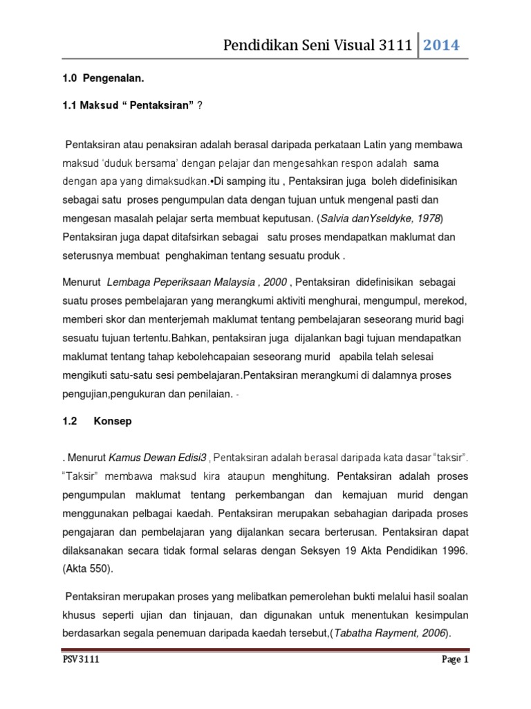 Jenis Pentaksiran Psv3113