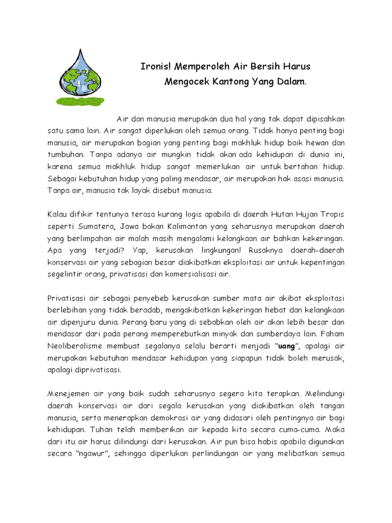 Contoh Karangan Upsr Kegunaan Air Kepada Manusia