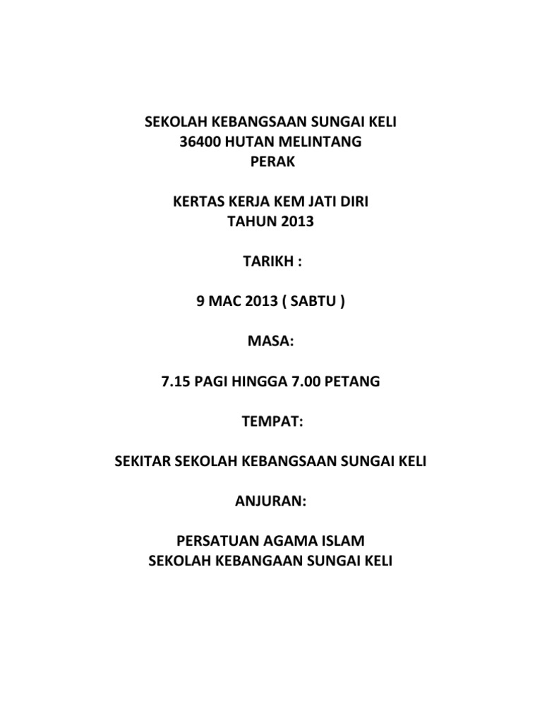 Doc Kertas Kerja Kem Kecemerlangan Sahsiah Diri Murid Sesi Petang Smk Bukit Rahman Putra 2014 Rashid Sarti Academia Edu