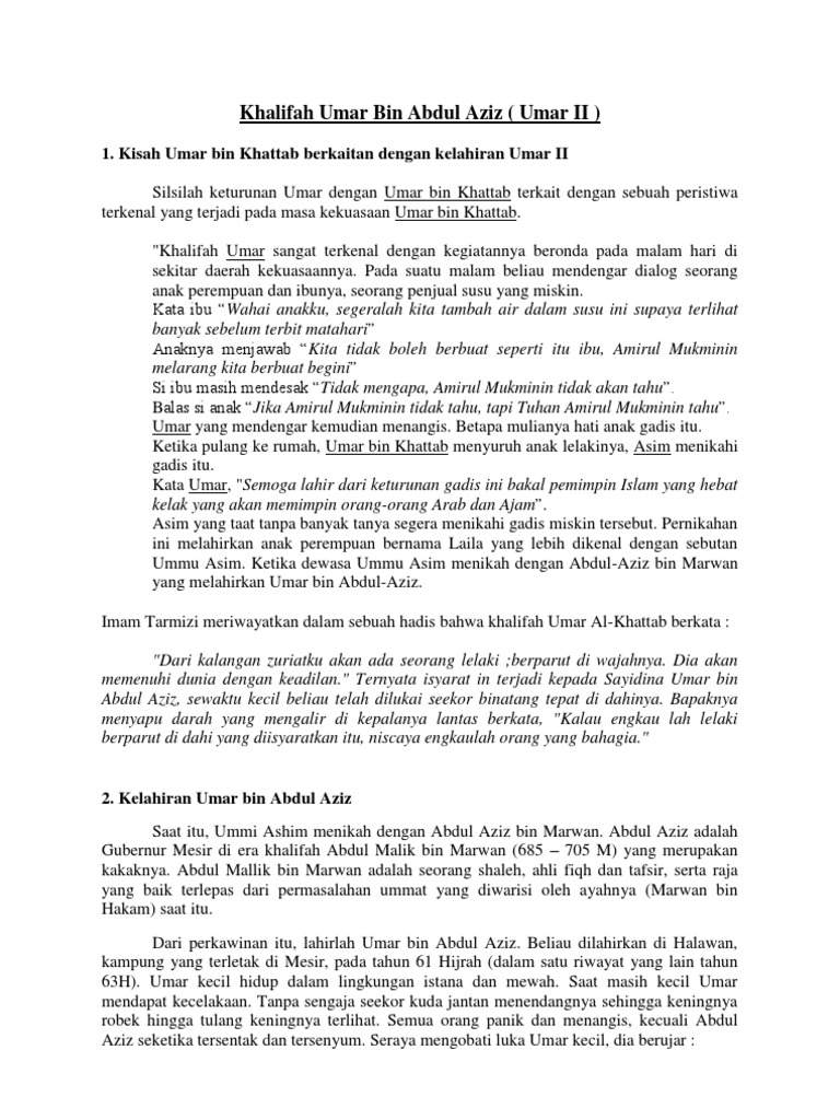 Doc Khalifah Umar Bin Abdul Aziz Amsspadang B One Academia Edu