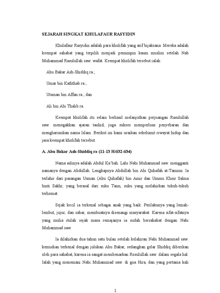 Doc Abu Bakar Ash Shiddiq R A Umar Bin Khattab R A Utsman Bin Affan R A Dan Ali Bin Abi Thalib R A Biografi Dan Keberhasilan Yandi Novia Debu Yandi Academia Edu