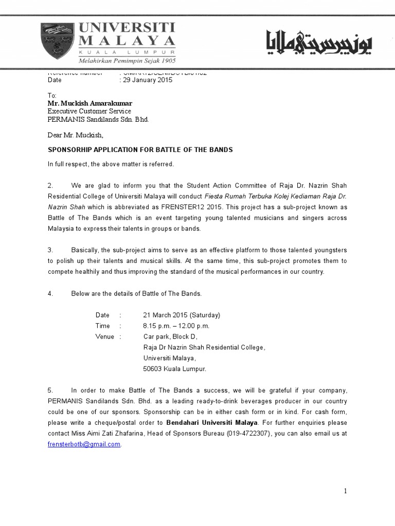 Formal Letter For Sponsor Permanis