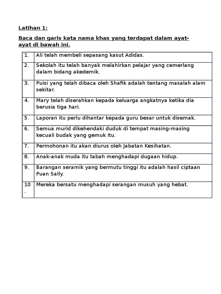 Latihan Kata Nama Khas Tak Hidup Tahun 5