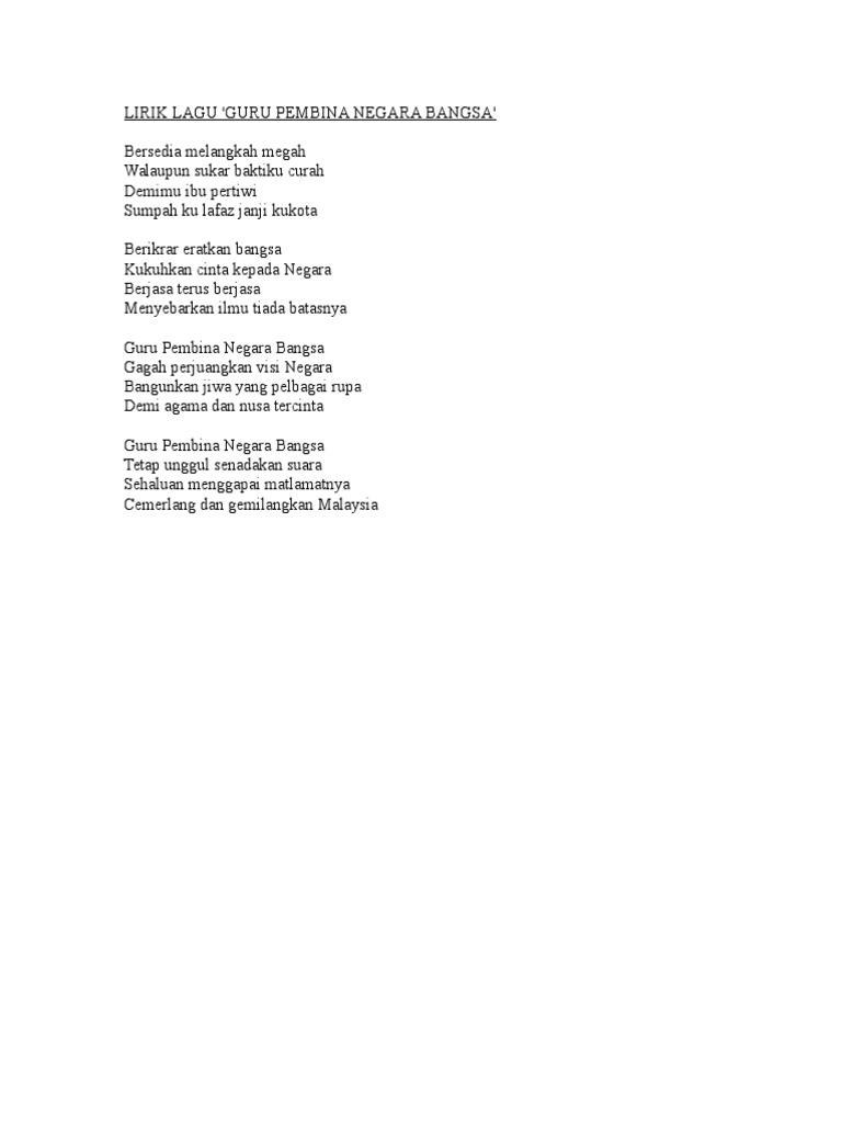 Lirik Guru Pembina Negara Bangsa