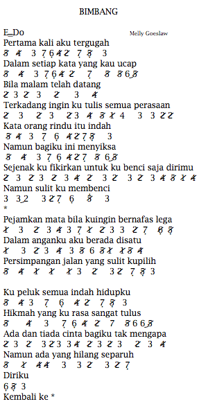 Not Angka Pianika Melly Goeslaw Bimbang Ost Aadc