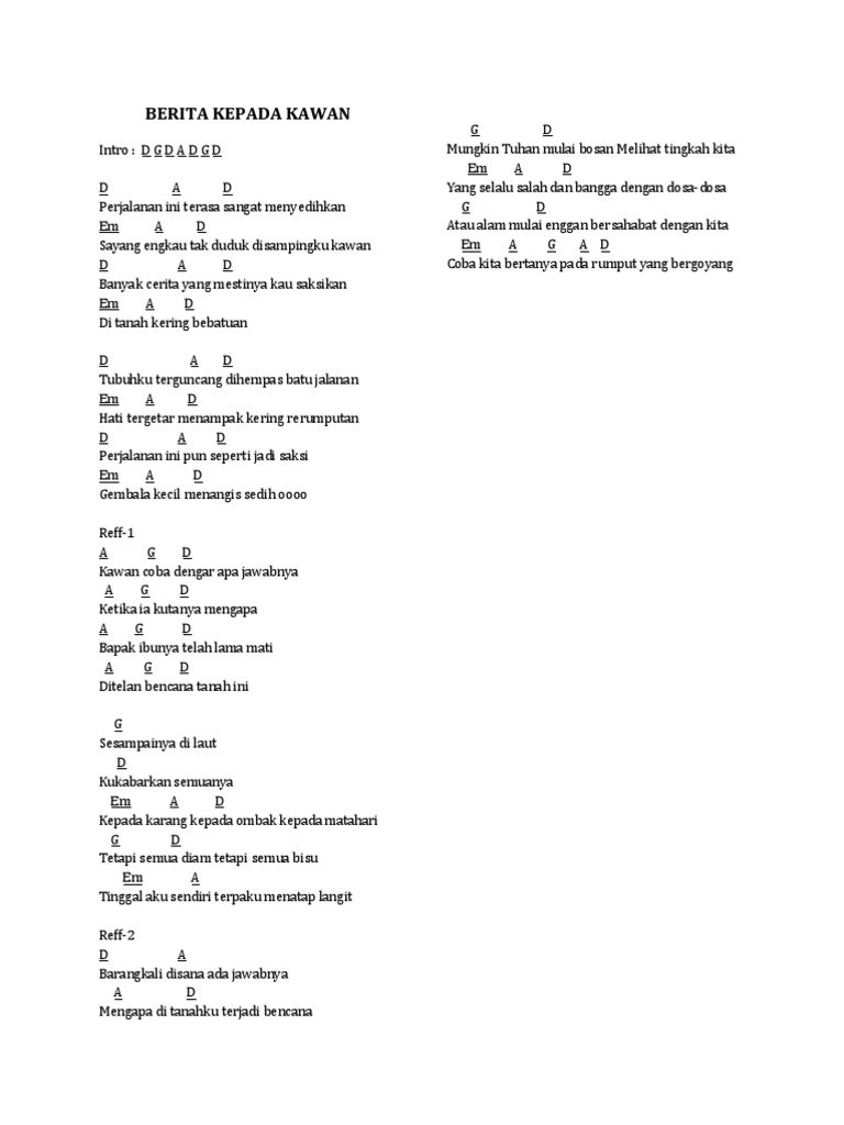 Lirik Lagu Berita Kepada Kawan Chordtela
