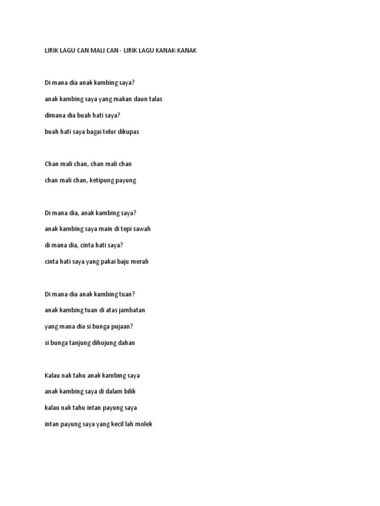 Lirik Lagu Can Mali Can