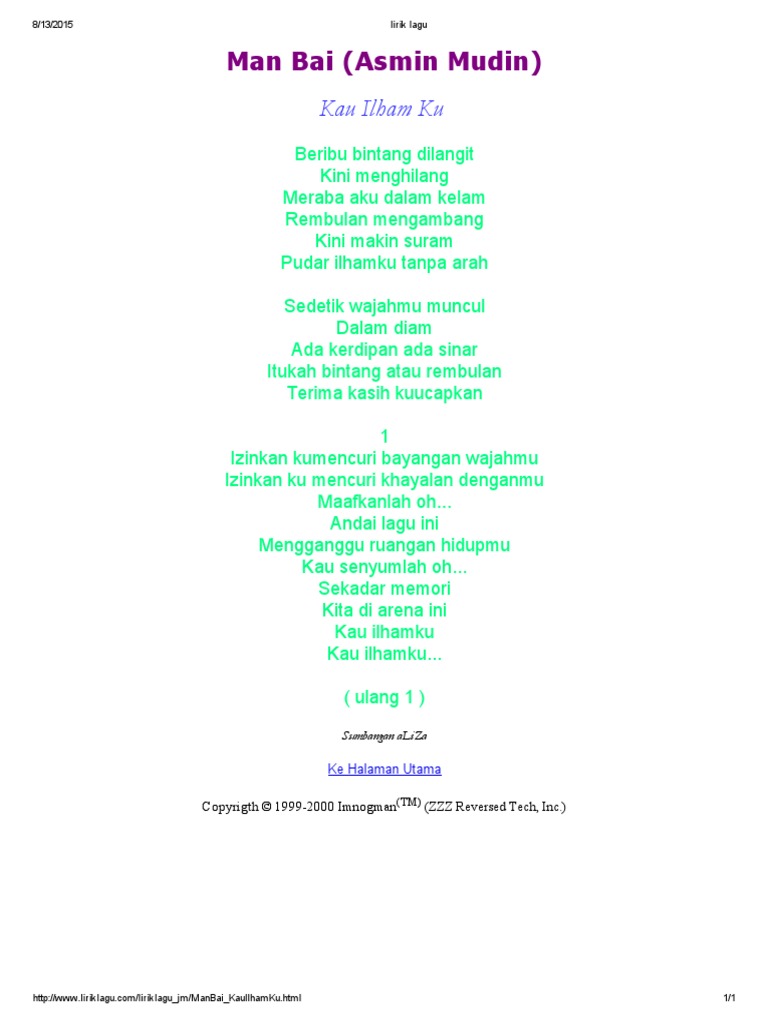 Lirik Lagu Kau Ilhamku Man Bai Lirik Lagu Muzik Anda