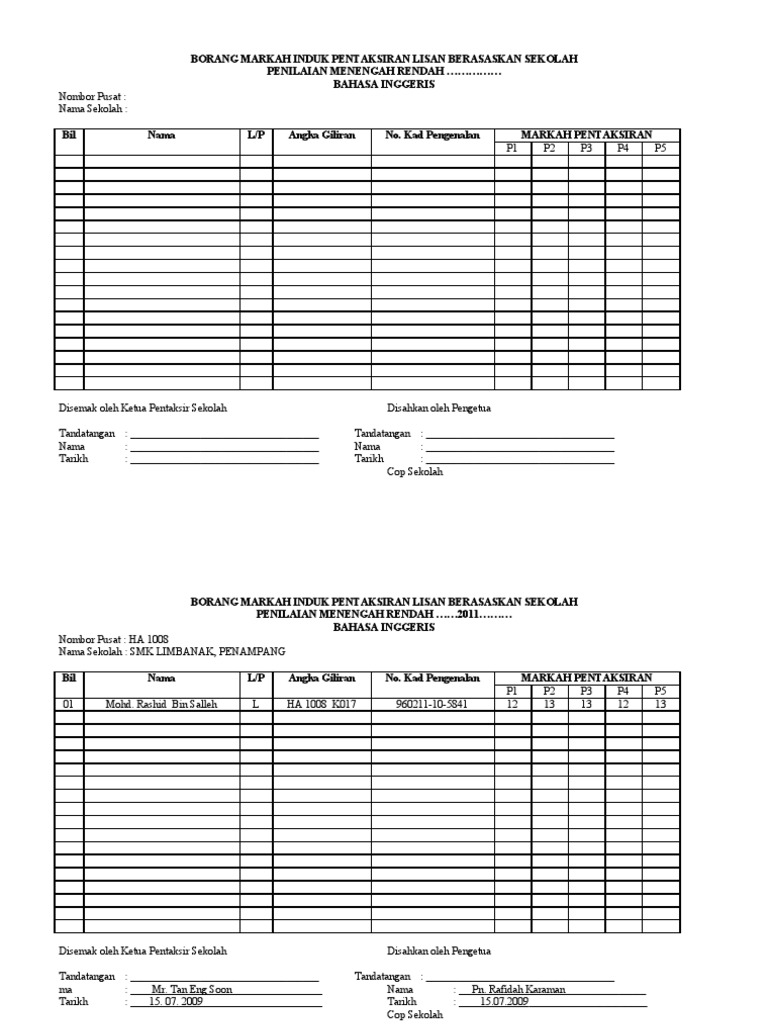 Borang Markah Induk Ulbs Spm Kps Bahasa Melayu 2010