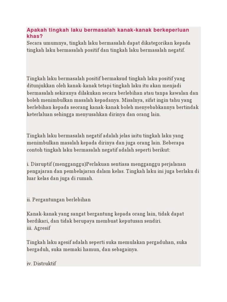 Apakah Tingkah Laku Bermasalah Kanak