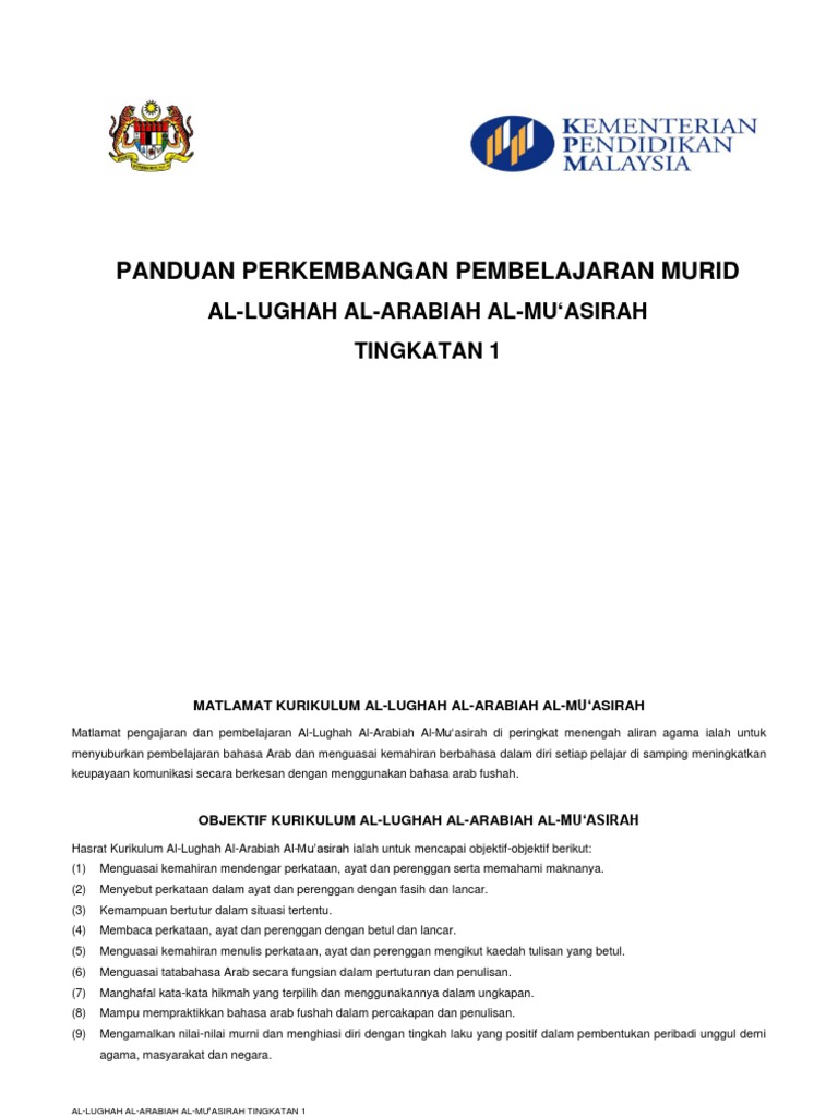 Pppm Al Lughah Al Arabiah Al Mu Sirah Ting 1 Pbs