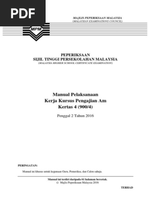 Peperiksaan Sijil Tinggi Persekolahan Baharu Manual Kk Manual 2014 Kursus Manual Pelaksanaan Kerja Pdf Document