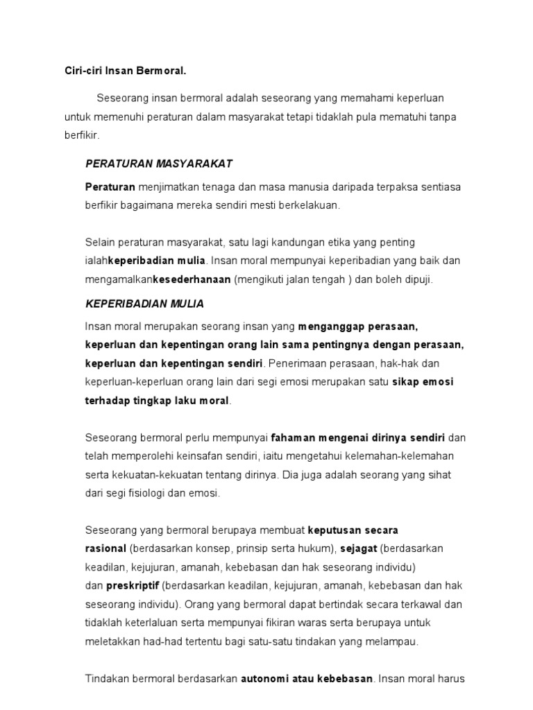 Pembentukan Insan Bermoral Secara Terpimpin Dalam Konteks I Integriti Ii Course Hero